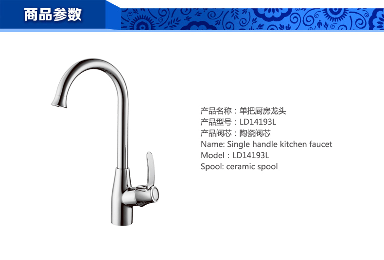 首頁 - 產(chǎn)品專區(qū) - 廚房龍頭 - 單把廚房龍頭LD14193L