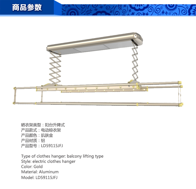 首頁 - 產(chǎn)品專區(qū) - 智能晾衣架 - 電動晾衣架LD59115JFJ