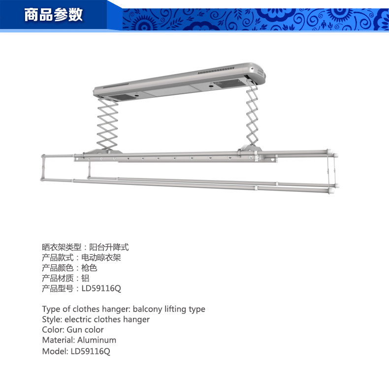 首頁 - 產(chǎn)品專區(qū) - 智能晾衣架 - 電動晾衣架LD59116Q