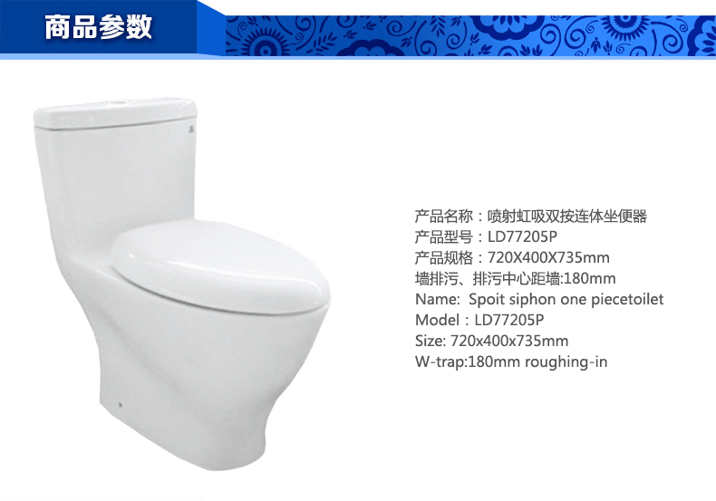 噴射虹吸雙按連體坐便器LD77205P