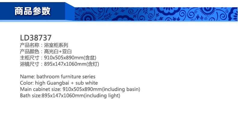 首頁(yè) - 產(chǎn)品專(zhuān)區(qū) - 浴室柜系列 - 浴室柜系列LD38737
