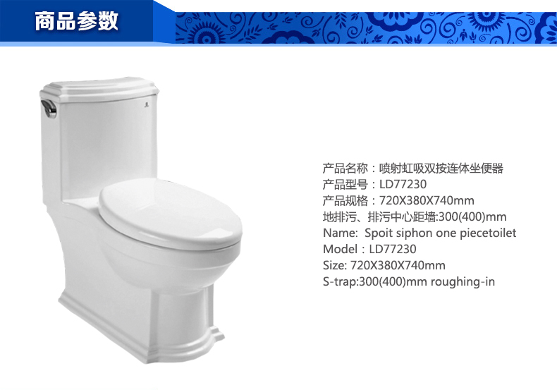 噴射虹吸雙按連體坐便器LD77208A
