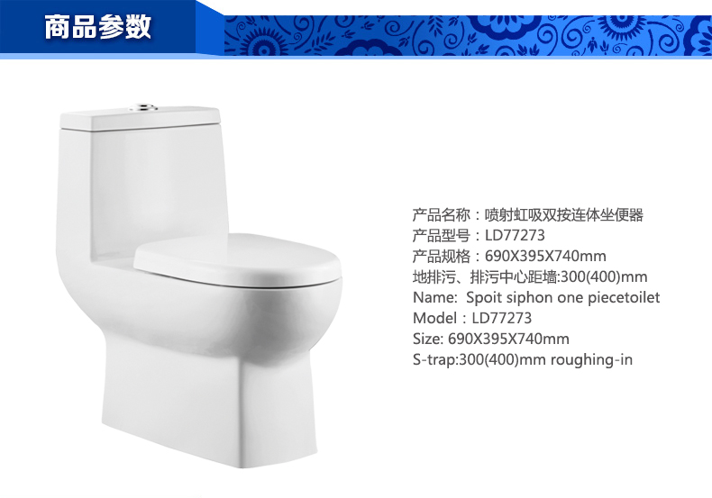 噴射虹吸雙按連體坐便器LD77273