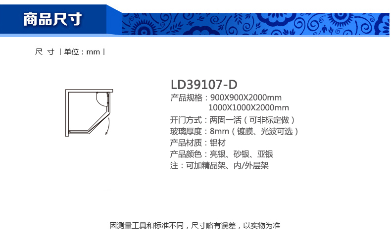 淋浴房LD39107-D900X900X2000mm 1000X1000X2000mm