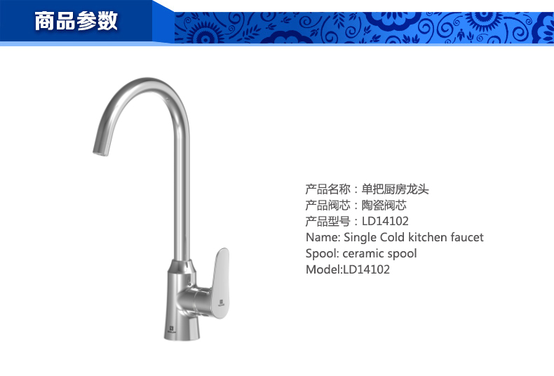 首頁 - 產(chǎn)品專區(qū) - 廚房龍頭 - 單把單孔廚房龍頭LD14102