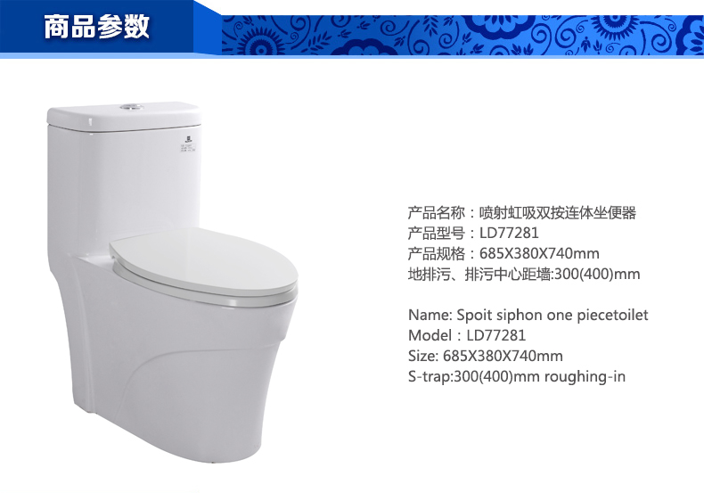 噴射虹吸雙按連體坐便器LD77205P