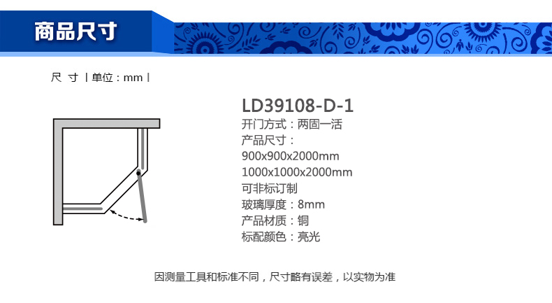 淋浴房LD39108-D-1900x900x2000mm 1000x1000x2000mm