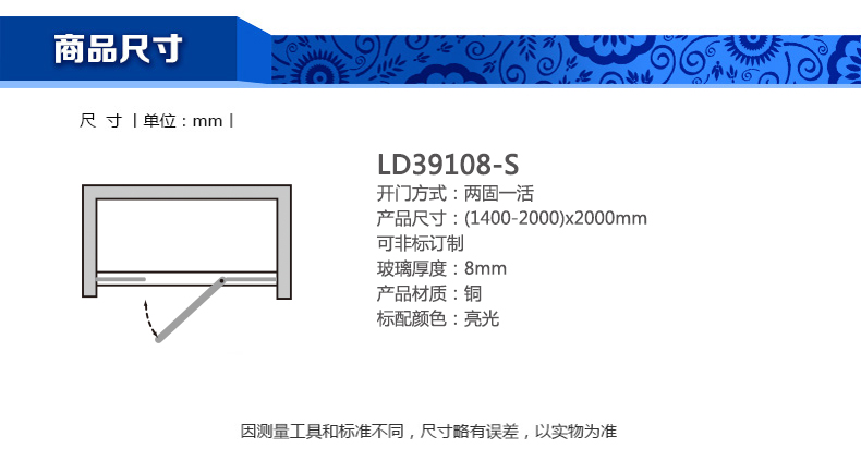 淋浴房LD39108-S(1400-2000)x2000mm