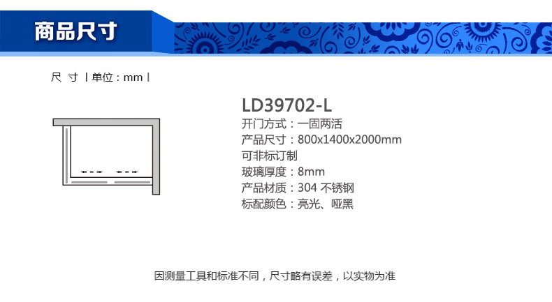 淋浴房LD39702-L800x1400x2000mm