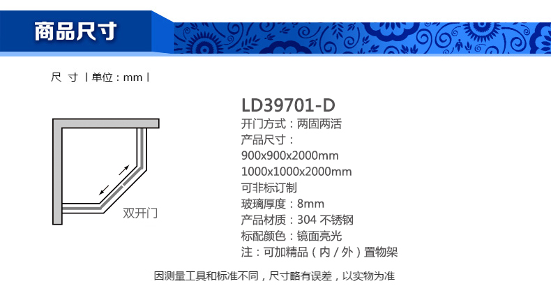 淋浴房LD39701-D900x900x2000mm 1000x1000x2000mm