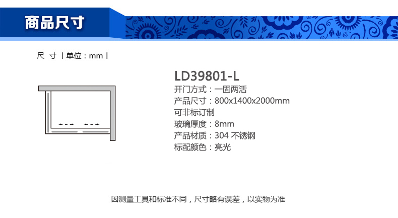 淋浴房LD39801-L800x1400x2000mm