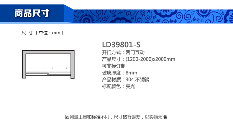 淋浴房LD39801-S(1200-2000)x2000mm