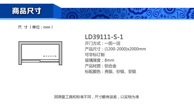 淋浴房LD39111-S-1(1200-2000)x2000mm